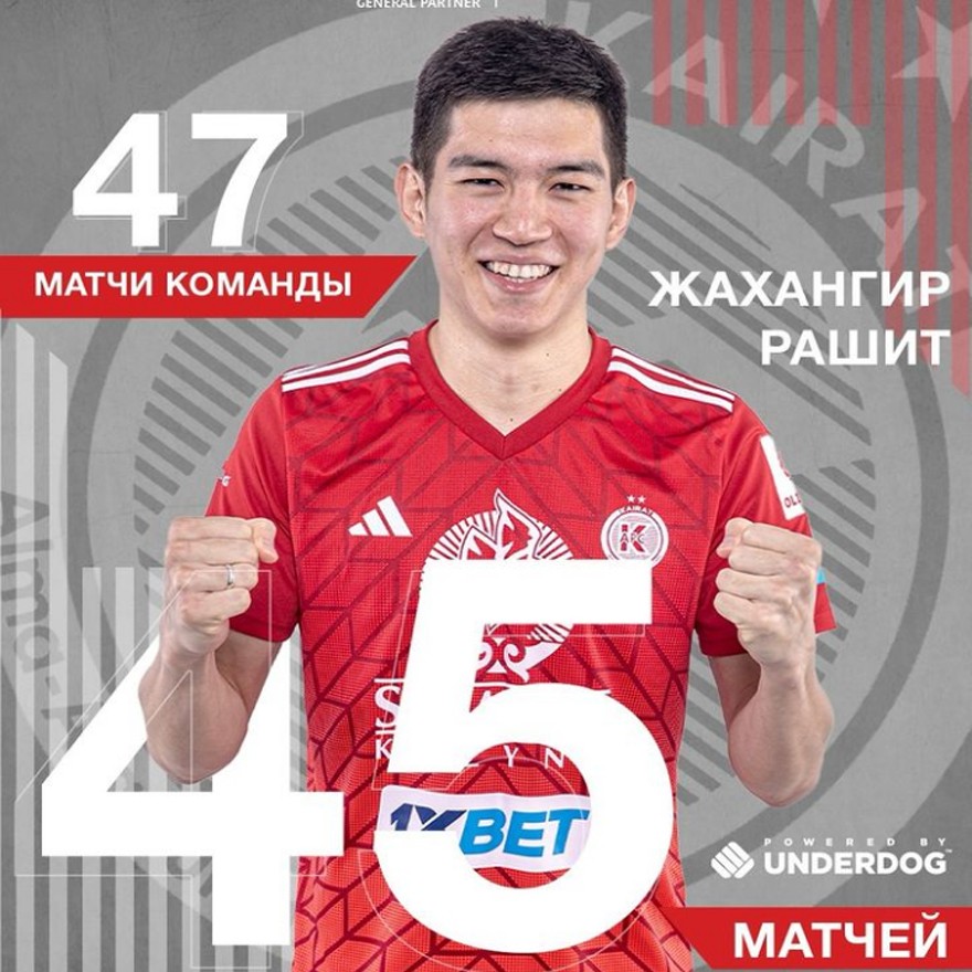 Жахангир Рашит өткен маусымда «Қайрат» сапында 47 матчтың 45-де өнер көрсетті – бұл ең көп нәтиже.